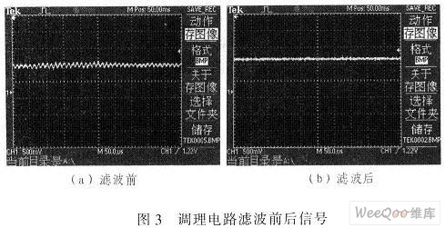 熱流傳感器產(chǎn)生的模擬信號經(jīng)過圖2測試信號調(diào)理電路后,信號放大、濾波性能良好,畸變率。欢沂褂肕AX291濾波器,可以增加信號的可靠性和穩(wěn)定性。避免分立元件的各種誤差、漂移影響。圖3是調(diào)理電路濾波前后效果對比圖。