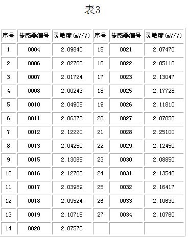 對(duì)照表1和表2,同一只傳感器的靈敏度變化很大,全部增加了約1.2mV/V左右,我們?cè)诖嘶A(chǔ)上繼續(xù)調(diào)整應(yīng)變梁的厚度,使靈敏度更加接近目標(biāo)值2mV/V。調(diào)整后小批量傳感器試驗(yàn)的靈敏度結(jié)果見表3。
