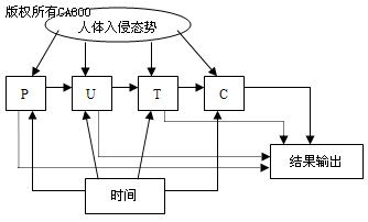 在數(shù)據(jù)檢測級,數(shù)據(jù)融合的結(jié)構(gòu)模型主要有串行、并行、帶反饋并行、樹狀和分散等幾種類型。針對不同的目標(biāo)和應(yīng)用領(lǐng)域,可以選用一種或幾種結(jié)構(gòu)混合使用。在防盜監(jiān)測中,可以采用如圖2所示的串行數(shù)據(jù)檢測融合結(jié)構(gòu)模型,能夠較為準(zhǔn)確地獲取現(xiàn)場人體入侵的情況。首先由熱釋電紅外傳感器(P)檢測是否有人體輻射出的中心波長為9~10μm的紅外線,進行判決,把結(jié)果傳到超聲傳感器(U)節(jié)點,在此融合這兩個傳感器的檢測結(jié)果形成一個新的判決,依次類推,再傳到多普勒傳感器(T),CCD傳感器(C)構(gòu)成的節(jié)點,最后融合輸出判決結(jié)果。