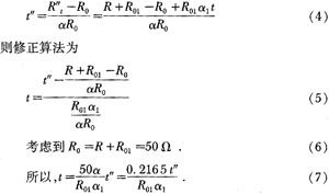 式(7)即為PCB板非標(biāo)準(zhǔn)化傳感器配標(biāo)準(zhǔn)化信號調(diào)理電路的校正算法。只要預(yù)知非標(biāo)準(zhǔn)化傳感器的零點(diǎn)R01和靈敏度α1,將上述算法編制程序作為系統(tǒng)應(yīng)用軟件的子程序,計(jì)算機(jī)即可根據(jù)IPC5457的測得值計(jì)算出被測溫度,達(dá)到了采用成熟的、商品化的標(biāo)準(zhǔn)化熱電阻輸入板采集非標(biāo)準(zhǔn)化熱電阻輸出信號的目的,簡化了系統(tǒng)硬件,相應(yīng)提高了系統(tǒng)的可靠性和穩(wěn)定性。