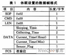 數(shù)據(jù)中轉(zhuǎn)器通過串口向匯聚節(jié)點(diǎn)發(fā)送的休眠設(shè)置命令的數(shù)據(jù)幀格式如表1所列。