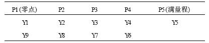 對(duì)于一個(gè)傳感器特性循環(huán)試驗(yàn),在取5個(gè)校準(zhǔn)點(diǎn)時(shí),測(cè)量點(diǎn)的分布見(jiàn)表1。