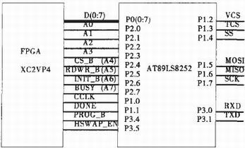 因?yàn)镕PGA信號(hào)CS_B、RDWR_B、BUSY、INIT_B、D0-D7在邏輯配置結(jié)束后可作為普通用戶(hù)定義I/O,所以在配置結(jié)束后這些引腳被定義為MCU和FPGA初始化的數(shù)據(jù)總線(xiàn)(P0口)和地址總線(xiàn)(P2口)。
