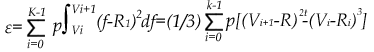 假設(shè):f代表圖像信息實際輸出值,Φ(f)代表圖像信息實際輸出值在Vp與Vd之間的密度函數(shù)。則,對于K個量化級而言,量化均方誤差為: