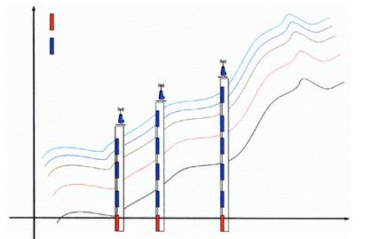 山體滑坡的監(jiān)測主要依靠兩種傳感器的作用:液位傳感器和傾角傳感器。在山體容易發(fā)生危險的區(qū)域,沿著山勢走向豎直設(shè)置多個孔洞,如圖1所示。每個孔洞都會在最下端部署一個液位傳感器,在不同深度部署數(shù)個傾角傳感器。由于該地區(qū)的山體滑坡現(xiàn)象主要是由雨水侵蝕產(chǎn)生的,因此地下水位深度是標(biāo)識山體滑坡危險度的第一指標(biāo)。該數(shù)據(jù)由部署在孔洞最下端的液位傳感器采集并由無線網(wǎng)絡(luò)發(fā)送。
