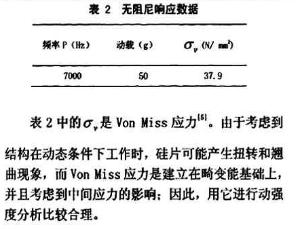 當(dāng)阻尼比g確定后,硅片表面動(dòng)應(yīng)力場的分布規(guī)律和數(shù)值是設(shè)計(jì)測量電路的重要依據(jù)。山圖6的應(yīng)力場分布云圖和表4的數(shù)據(jù)可以看到,硅片表面的口,、叮,沿硅片表面縱向和橫向中心線是對稱分布的,最大值滿足強(qiáng)度條件。這說明,硅片在動(dòng)態(tài)條件下叢本呈彎曲對稱變形。很顯然,這是一種理想的工作狀態(tài)。