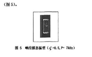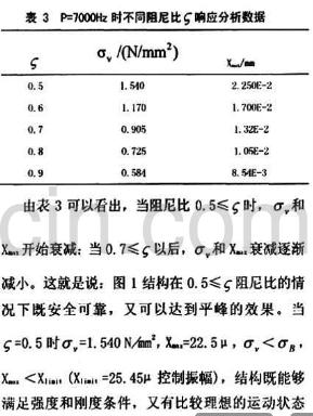 對結(jié)構(gòu)施加阻尼后,結(jié)構(gòu)頻率的利用率就會(huì)提高。當(dāng)0.5毛g時(shí),結(jié)構(gòu)的模態(tài)振型和硅片表面動(dòng)應(yīng)力場的分布規(guī)律都呈現(xiàn)比較理想狀態(tài),可以確定戶7kHz為工作頻率的上限值。0一尸的頻率范圍為不受干擾的工作頻帶。