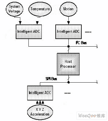 圖 2 顯示了有關(guān)系統(tǒng)如何利用主機(jī)和智能ADC的概念。