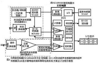 設(shè)計(jì)方案包括:IC1主控器-為用Microchip的 PIC l8F8490微控制器作為汽車倒車障礙檢測(cè)系統(tǒng)的主控器;發(fā)送部份(即發(fā)送超聲波傳感器)與接收部份(即接收超聲波傳感器);溫度傳感器(TC1047A)、通信接口RS-232驅(qū)動(dòng)器以及與LCD或LED顯示器等外圍電路組成。