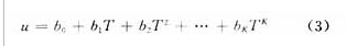 將b0,b1,b2,…,bK和計(jì)算上式的子程序送入內(nèi)存,溫度值T0,T1,…,TK-1和傳感器對應(yīng)的輸出電壓值u0,u1,…, uK-1按順序分配方式存入內(nèi)存,構(gòu)成一個(gè)線性表,采集數(shù)據(jù)時(shí),CPU按線性查找對應(yīng)溫度的電壓值u,并按下式計(jì)算對應(yīng)的被測物理量y: