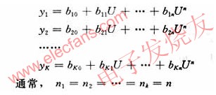 圖中y為被測物理量,u為輸出電壓,利用最小二乘法曲線擬合求出截距u的多項(xiàng)式: