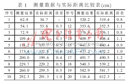 通過大量實(shí)現(xiàn)數(shù)據(jù)表明,本系統(tǒng)測量誤差小于±2 cm,滿足設(shè)計(jì)要求,并且符合工業(yè)標(biāo)準(zhǔn);诔暡ㄊ芊蹓m、震動及電磁波等惡劣工業(yè)因素影響極小的特點(diǎn),本系統(tǒng)還可廣泛用于工業(yè)測距、汽車行駛、金屬探傷等領(lǐng)域,具有較好的應(yīng)用前景。