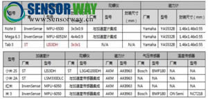 一些主流手機廠商所采用的傳感器