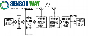 圖2無線傳輸型旋轉(zhuǎn)扭矩傳感器原理框圖