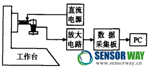 檢測(cè)電路利用 8個(gè)應(yīng)變計(jì)組成兩組惠斯登電橋 , 將彈性體的形變轉(zhuǎn)換成應(yīng)變計(jì)的電壓信號(hào)輸出 。 電橋的輸出電壓信號(hào)后接電壓放大電路 , 然后 , 由 200k/s速率的數(shù)據(jù)采集卡將放大后的電壓信號(hào)讀入計(jì)算機(jī) , 最終 , 利labvi ew軟件編程得到數(shù)值 ,如圖4所示。