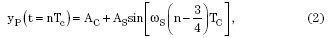 如果我們已經(jīng)知道了底層信號的頻率(通常都是這樣的),而且如果信號呈正弦波(這是典型的高頻率激勵信號),則提取的峰值就是每個周期中正弦波的振幅。也就是說,第 n 個載波頻率周期的峰值可以表達為下列數(shù)學(xué)式: