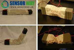 布機器人包裹在泡沫塑料或氣球等材料表面后,便可驅(qū)動材料向所需方向往復(fù)彎曲變形,推動材料像尺蠖一般呈拱形前進;還可通過壓縮不同部位,做出蠕動和滑行的動作。