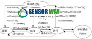 圖2 μC/OS-II任務狀態(tài)轉(zhuǎn)換示意圖
