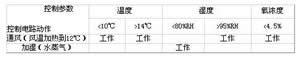 由于是冬季,當儲藏室環(huán)境溫度高于14℃或濕度大于95%RH、或氧濃度低于4.5%設定值時,不能直接將冷空氣送入儲藏室,必須將室外空氣加熱到12℃送入,否則,會造成紅薯受冷變質(zhì)。三個參數(shù)中,最主要的是溫度值,然后是濕度。繼電器電路的工作情況如表1所示。