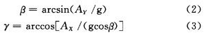 當(dāng)加速度計被定向,那么它的X和Y軸就和地球表面平行可用來作為具有翻滾和傾斜兩個軸的雙軸斜度傳感器,被測物體的俯仰角記為γ和橫滾角β。將磁阻傳感器的3個敏感軸沿載體的3個坐標(biāo)軸安裝,分別測量地磁場磁感應(yīng)強(qiáng)度H在載體坐標(biāo)系3個坐標(biāo)上的投影分量(HX,HY,HZ),然后利用俯仰角和橫滾角進(jìn)行姿態(tài)解算就可以得到電子羅盤的方位角。