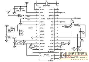 MAX1473外圍電路主要包括三部分:LNA調(diào)諧電路、輸入匹配和晶振電路。LNA調(diào)諧電路由連接在LNAOUT引腳的L2和C9組成,諧振頻率