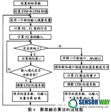 聚類融合子程序是整個(gè)系統(tǒng)的核心,包含了信息融合中的融合數(shù)據(jù)庫(kù)和專家知識(shí)庫(kù),以及在監(jiān)測(cè)、控制和運(yùn)算、變換過(guò)程中所需要的數(shù)據(jù)和知識(shí)。圖4是聚類融合算法的流程圖。