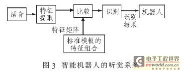 Hz,過(guò)高或過(guò)低頻率的聲音在一般情況下是不需要傳輸?shù)?所以只用傳送頻率范圍在1000Hz~3000Hz的聲音,醫(yī)生和家庭成員就可以進(jìn)行正常的交流,從而可以降低傳輸音頻信號(hào)所占用的帶寬,再采用合適的通信音頻壓縮協(xié)議即可滿(mǎn)足實(shí)時(shí)音頻的要求。智能機(jī)器人的聽(tīng)覺(jué)系統(tǒng)如圖3所示。