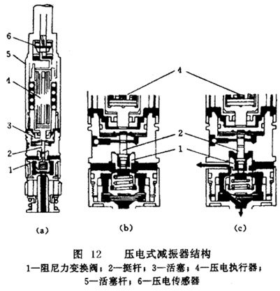 圖 12所示即為應用了壓電傳感器和壓電執(zhí)行器的壓電式減振器結構。