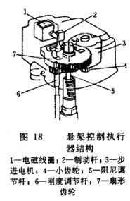 步進電機帶動小齒輪驅動扇形齒輪轉動,與扇形齒輪同軸的阻尼調節(jié)桿帶動回轉閥轉動,使阻尼孔開閉的數量變化,從而調節(jié)減振器的阻尼。