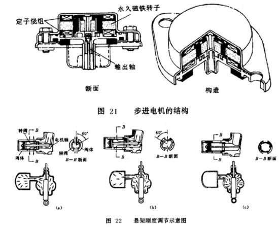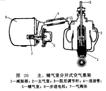 圖 20所示的為另一種結構形式的空氣懸掛結構。其結構特點是主氣室與輔氣室為分開式結構,中間由連接管相通。主、輔氣室的氣體通路仍由步進電機轉動氣閥體來控制。