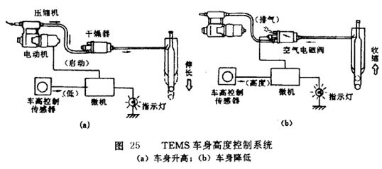 圖 25所示為日本豐田公司TEMS(TOYOTAElectronic Modu1ated SUSPEnsion)系統(tǒng)的車身高度控制系統(tǒng)。