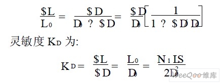 由式( 1) 可知, 線圈電感量L 與氣隙厚度D成反比,與氣隙截面積S 成正比。假設(shè)起始位置的氣隙為D0 , 對(duì)應(yīng)的初始電感為L(zhǎng)0 , 且S 固定不變, 當(dāng)D有細(xì)微變化為$D時(shí), 引起自感量的變化量dL 為( 忽略高次項(xiàng)) :