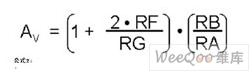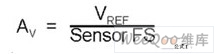 其中VREF代表ADC的參考電壓,“Sensor FS”是傳感器的滿刻度輸出值。假設(shè)電阻完美匹配,那么儀表放大器的增益等于: