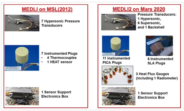 MEDLI和MEDLI2中使用的儀表傳感器的比較。圖片由NASA提供