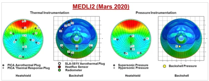 Perseverance隔熱板上的一套傳感器稱為MEDLI2,旨在測(cè)量流動(dòng)站的進(jìn)入,下降和著陸(EDL),以更好地協(xié)助未來的任務(wù)。
